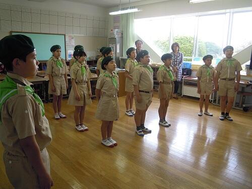 みどりの少年団結団式がありました。団員は、5年生と6年生で、計13名です。団長は、6年:水元颯太君、副団長は、6年:長渡涼君、5年:黒木大雅君です。先祖から受け継いだ尊い茶臼原の美しい豊かな自然を守り続けていくために、様々な活動に取り組みます。5年生は、初めて制服を着ました!!