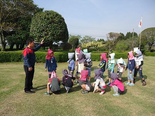 連日、熊本地震の被害について、報道がなされており、被害に遭われた方々や今もなお、地震の恐怖に耐えていらっしゃる方々を思うと、本当に一日も早く、地震がおさまってくれることを祈るだけです。本県でも地震が頻繁に発生しております。今朝は、学年毎に、避難経路確認等の訓練を実施しました。西都市赤十字奉仕団の方々からいただいた防災ずきんをかぶり、避難場所や避難の 仕方を真剣な態度で確認しました。