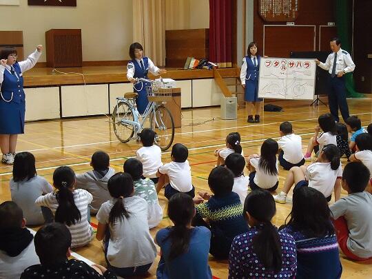 交通教室がありました。天気の関係で体育館での実施となりましたが、西都警察署と交通安全協会から4名の方々に来ていただきました。日常生活での危険予知の大切さ、自転車の点検の仕方や乗り方等を教えていただきました。「交通安全に気をつける」当たり前のことですが、徹底していきたいことです。