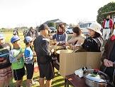 子どもたちがあげる凧は、穂北地域づくり協議会の方々が中心となり、11月に「ものづくり体験学習」で作ったものが大半です。空高く気持ちよさそうに飛んでいる凧がたくさんありました。各子ども会では、大凧や連凧揚げにも挑戦し、3つの地区の凧が見事勇壮に上がっていました。この凧の様子を見ると、今年は、さらにみんな高く高く上昇しそうな予感がします。上昇賞が5年黒木大雅君、デザイン賞が4年清原音々さん、ユニーク賞が4年巽迪大君、PTA会長賞が3年三島直進君、子ども会は上茶地区が優勝でした。凧揚げの後は、お母さん達が作ってくださったおいしい豚汁とぜんざいをみんなで完食しました。ご協力いただいた保護者や地域の方々、毎年、場所を貸してくださっている日向芝園様、どうもありがとうございました。