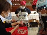 5・6年生が、食育の一環で、とんとん教室を行いました。JA宮崎経済連から、児玉康則様と石黒幸様に来ていただいて、豚についての学習やソーセージ作りを教えていただきました。初めての体験に子どもたちも大喜び。羊腸に豚肉をつめて、形を整えて、ゆでていためて、いただきました。形が崩れてしまったのもあったけど、「おいし~」と大満足の子どもたちでした。JAの方々からは、子どもたちの手際のよさとチームワークのよさをたくさん誉めていただきました。