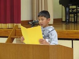 新任式では、6年生の今井吏紅君が気持ちを込めて、代表で歓迎の言葉を述べました。始業式もあり、6年生の長渡蓮君が、最上級生の目標を堂々と述べました。みんな、一つずつお兄さんお姉さんです。頑張ってくださいね。