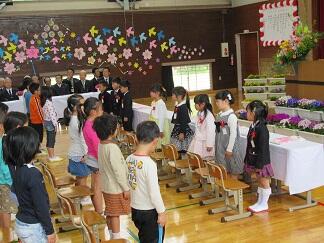 今年も、本校に男子3名、女子7名、合計10名のピカピカのかわいい1年生が入学しました。入学式当日、インフルエンザのため、参加できなかった子どもたちと後日、ミニ入学式も開催しました。お勉強や給食も始まり、子どもたちはとても楽しそうに毎日を過ごしています。遅くなりましたが、入学式とミニ入学式等の1年生の様子です。
