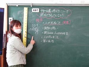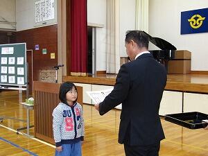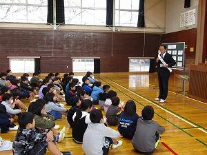 私の話では、3学期を駅伝に例えて「たすきをつなごう」という話をしました。今の学年の学習や生活をしっかりとまとめ、次の学年にたすきをつなごうと話しました。子ども達はしっかりとした姿勢で真剣に聞いていました。