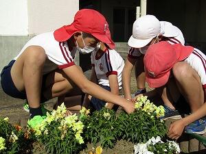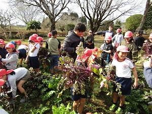 大寒の頃だというのにとても暖かい日差しの指す中、今日はみんなで花壇の整備を行いました。花壇の脇に置いている1年生の植木鉢には、もうチューリップの芽が出ていました。春と間違えたのでしょうか!?