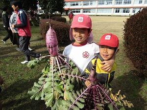 11日(金)には5・6年生が家庭科でこの大根を使った料理に挑戦する予定です。どんな料理に仕上がるか、それも楽しみです。