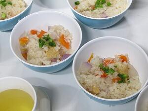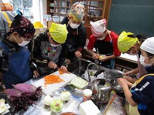 今回のメニューは米良大根の「炊き込みご飯」と「ポトフ」でしたが、段取りよく調理が進み、みんなで美味しくいただきました。全員の先生方にもふるまい、「とっても美味しいね!」と言われて、みんな大喜びでした。