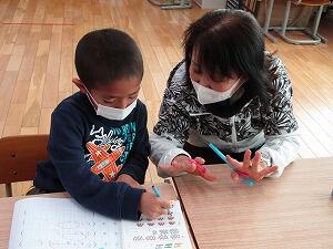 1月9日(水)1年生で算数の研究授業が行われました。今回が今年度最後の研究授業となりました。本校では、授業力向上を目指して全員が研究授業を行い、その後の事後研究会では宮崎大学の先生にも参加していただいて、率直に意見を交換し、日常授業の改善を図っています。今回の授業でも、ICTを活用した担任のきめ細やかな工夫が随所に見られ、1年生の子ども達の大きな伸びを感じた授業となりました。