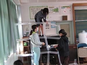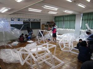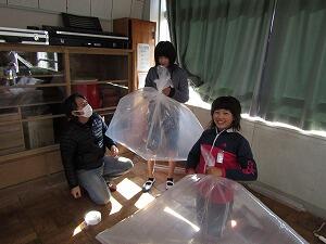 身近にある「傘袋」や「ビニールシート」を使って、夢のあるとても楽しい創作活動ができました。宮崎大学の先生方、本当にありがとうございました。また来年もよろしくお願いします。