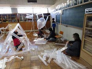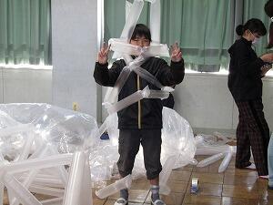 1月29日(火)宮崎大学教育学部の芸術系の先生方を講師にお招きしての「創作教室」を行いました。1日目の今日は、雨が降ったときに大型スーパー等で使用する「傘入れのビニール袋」を使っての創作から始まりました。子ども達は思い思いに袋を膨らませ、想像の世界を創っていました。今日から3日間でどんな世界が出来上がるのか楽しみです!