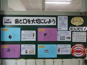 6月は歯を大切にする月です。保健室前の掲示を見ると、子ども達に歯を大切にしてほしいという養護教諭の先生の思いが伝わってきます。子ども達も熱心に見ています。そのお隣には、「リフレーミング」に関する掲示があり、読んでみるとプラス思考で生きていこう!という気持ちにさせられます。