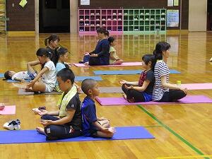 本年度の家庭教育学級の第1回目の講座「親子ヨガ教室」が行われました。講師の先生を招いて、ほぼ全学級生が集い、子どもと一緒に「ヨガ」を学びました。