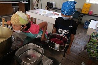 「おいも収穫祭」として、1~3年生が先日収穫したおいもを使って料理に挑戦しました。今年は「ふかしいも」と「スイートポテト」の2品です。