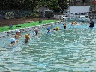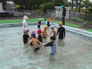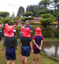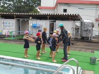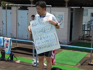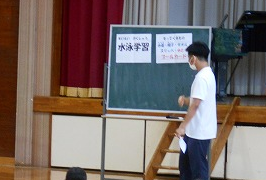 先生の水泳に関してルールの説明をみんなしっかりと聴いていました。