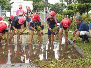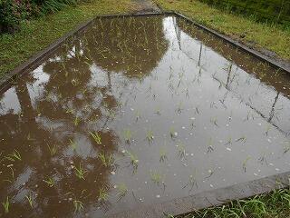 小さな田んぼですが、5年生がおなかいっぱいになるくらいお米が採れるそうです。これから、毎日田んぼの手入れや稲の観察を頑張っていきます!!