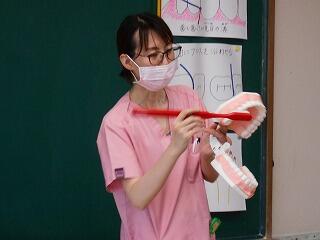 歯科衛生士さんや長谷川先生に歯ブラシの持ち方や場所ごとの磨き方など教えていただきました。歯ブラシを持つ力は約250グラム程で十分だそうです。この時間にそれぞれの場所によって磨き方もことなり、ブラッシングの大切さを学びました。