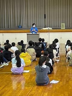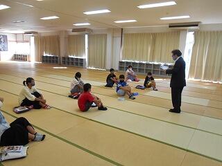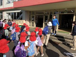 少し肌寒い中、子ども達は真剣に話を聞いていました。さすが5年生!!