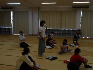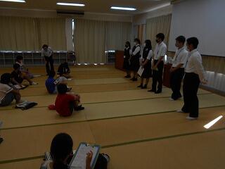 導入の部分では、ラジオ体操を行い体の曲がる部分を確かめていきました。