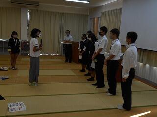 高校内にある聖陵会館で、副校長先生から妻高校の様子など簡単に説明がありました。妻高校には、普通科・福祉科・情報ビジネスフロンティア科があるそうです。