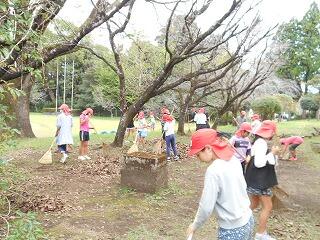 1年生から6年生まで、全員で協力して主に「落ち葉はき」や「花壇の草取り」をして、運動場をはじめ校庭や花壇をきれいにしていきます。