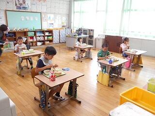 みんな美味しそうに食べていますね!持久走で体力を使ったから、しっかり食べて体力を回復させよう!!