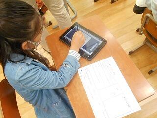 子ども達は、タブレットを活用して体の曲がる部分に印を付けていきました。