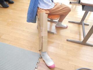 また、関節の動きを理解するために、段ボールギブスを曲がる部分に付け固定するとどうなるかを体験することにしました。