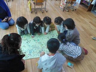 1年生から6年生まで、面白そうに大型絵本に集中していました。