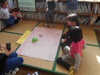 いろんなゲームは、1年生教室と図書室とに分かれて行いました。