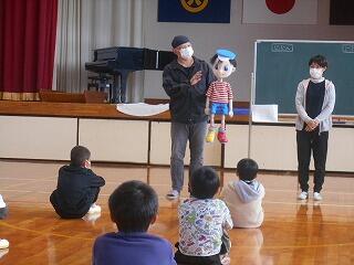 今日の4~5時間目に、宮崎県立劇場のスタッフの方や東京から人形劇団の方々に来ていただいての「ワークショップ・人形劇」を行いました。