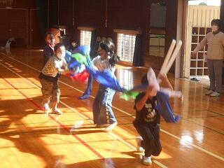 今日は、ひかり保育園の年長さん(7名)と茶小の1年生・2年生との交流会を行いました。先週から、1年生・2年生の子ども達は、この交流会のためにゲームを考えたり、道具を作ったりしながら楽しみに待っていました。