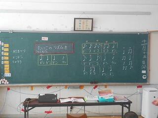 本校は、音楽の授業もICTを活用しています。今日の2年生の音楽はリズムに関しての学習でした。
