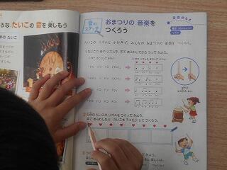 小太鼓でリズムをとった後、自分たちでいろいろなリズムを考えました。