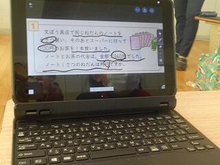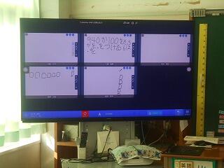 大型テレビから、子ども達のタブレットに問題文を配信します。