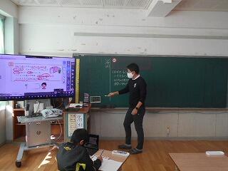 授業の際には、タブレットの活用と同時に黒板の板書やノートの取り方を大切に考えているため、簡潔に板書していきます。