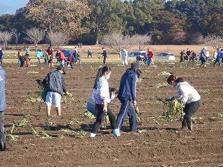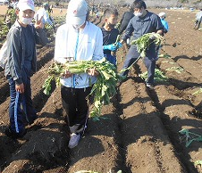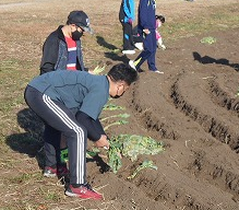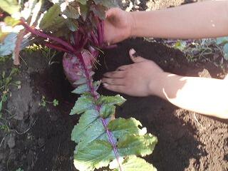 子ども達は、夢中に(しかし、丁寧に)土を深く掘りながら大根を収穫しました。
