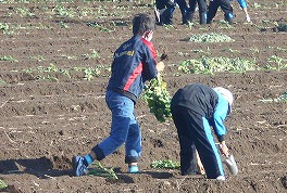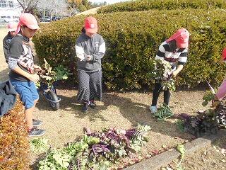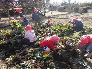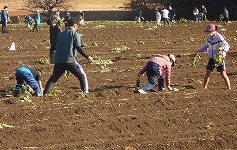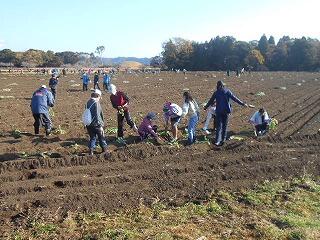 一本一本、手で植えていきます。地道な作業ですが、みんな一生懸命に頑張りました。3月、きれいな菜の花が咲くのが待ち遠しいです。