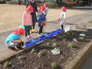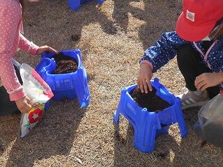 一人2個の球根を大事そうに植えていきました。丁寧に土をかぶせていきます。