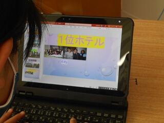 6年生が、修学旅行の新聞作りをしています。使っているのは模造紙ではなくタブレットです。
