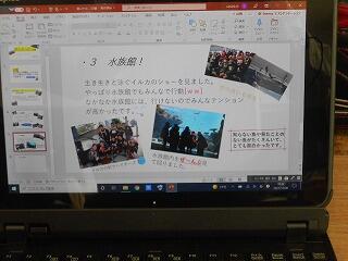 タブレットの機能の一つ「パワーポイント」を活用して、プレゼンテーション形式で作成しています。