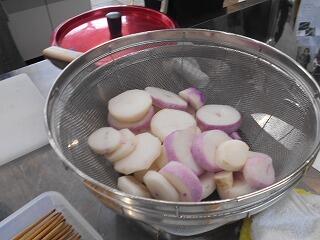 最初に、お湯で煮込んでいたので、柔らかくなった米良大根にしっかりと味がしみこんでいきます。