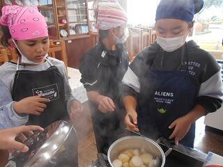 今日、6年生は「総合的な学習の時間」で取り組んできた「米良大根」の集大成、「調理実習」を行いました。
