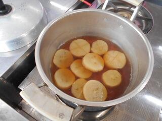 いよいよ、大根の味付けです。白だしと醤油で、美味しく味付けしました。