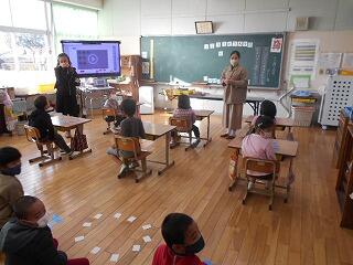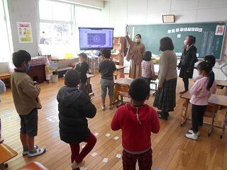 毎週火曜日は、ALTのジュビ先生が来校される日です。本校では、1年生・2年生と合同で外国語活動を行います。