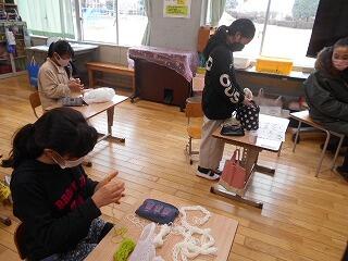 最後に、クック&ソークラブです。ここでは、手芸にチャレンジしていました、指と毛糸だけでマフラーを編んでいました。