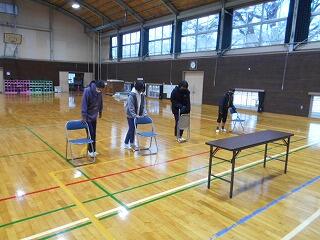 今日の午後から、新入学説明会(令和4年度新入生)があります。そのため、会場設営をしなければなりません。そこで、活躍してくれるのが6年生です。
