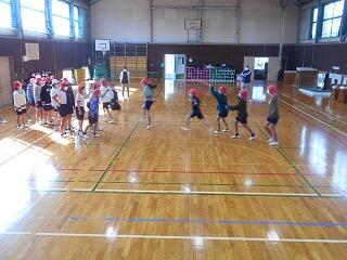 スポーツクラブでは、最後に新しくなったボールでドッジボールを楽しんでいました。途中からボールを2個にして、反射神経を高める工夫もしていました。