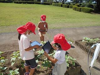 1年生もタブレットを活用しています。だんだんと生長しているミニひまわりの観察のために、今日はミニひまわりの写真をタブレットで撮影し、保存してみました。