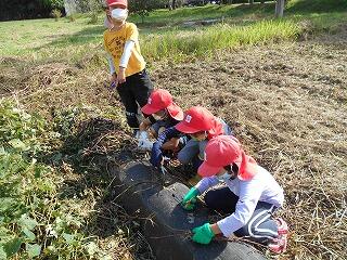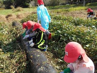 教えていただいたとおりに子ども達は収穫を始めました。