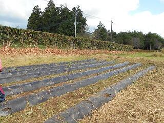つるを切った後、どけていくとマルチングが見えてきました。